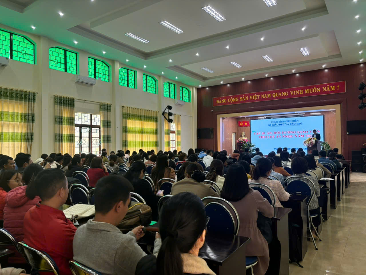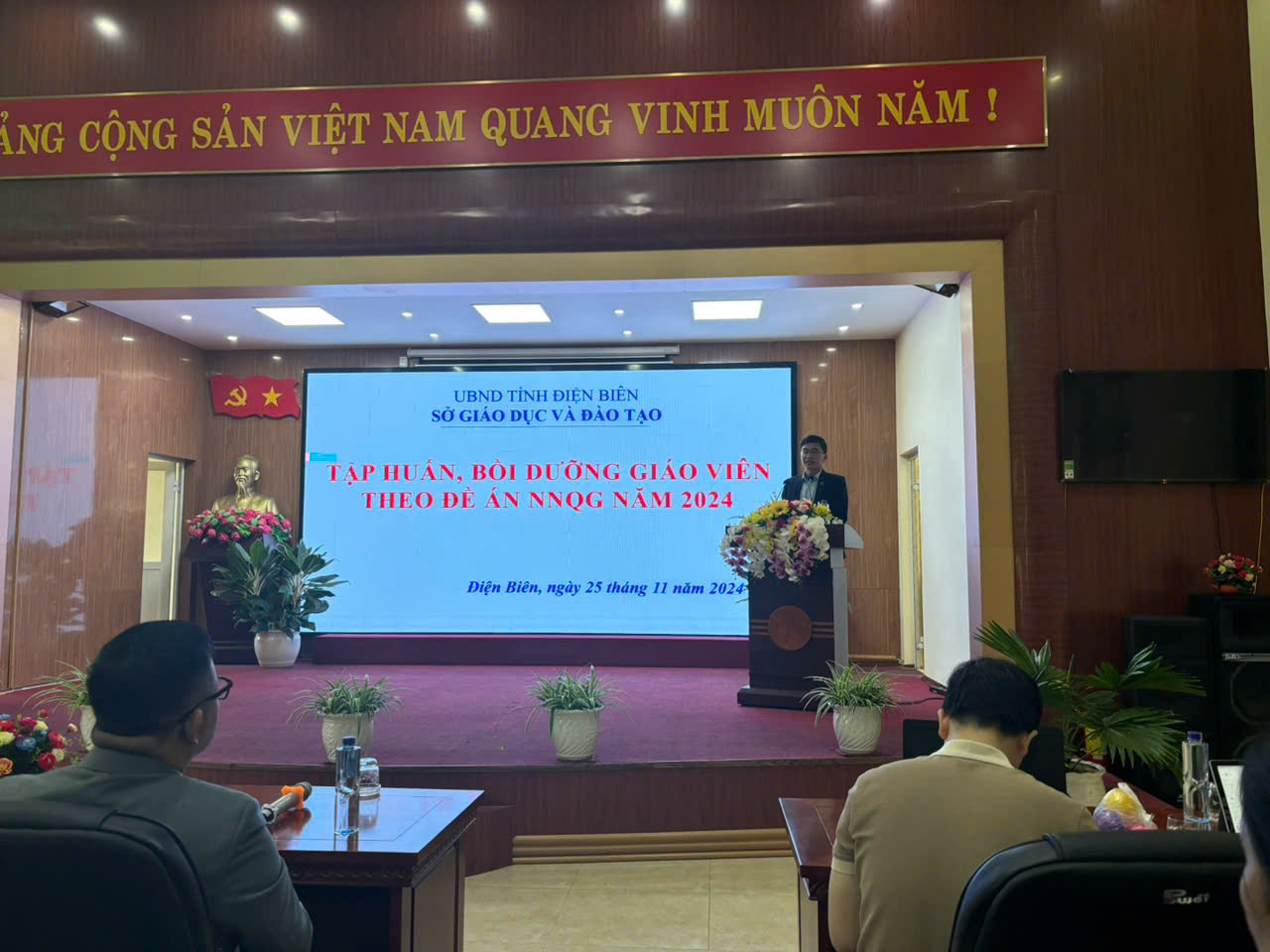 Thực hiện Quyết định số 1368/QĐ-SGDĐT, ngày 18/11/2024 của Sở GD&ĐT tỉnh Điện Biên về việc mở lớp tập huấn PPDH, KTĐG giáo viên cốt cán môn tiếng Anh cấp TH, THCS và THPT năm học 2024-2025. Sở Giáo dục và Đào tạo tổ chức bồi dưỡng cho 142 giáo viên tiếng Anh các cấp Tiểu học, Trung học cơ sở, Trung học phổ thông trong ngày 25,26 và 27/11/2024.