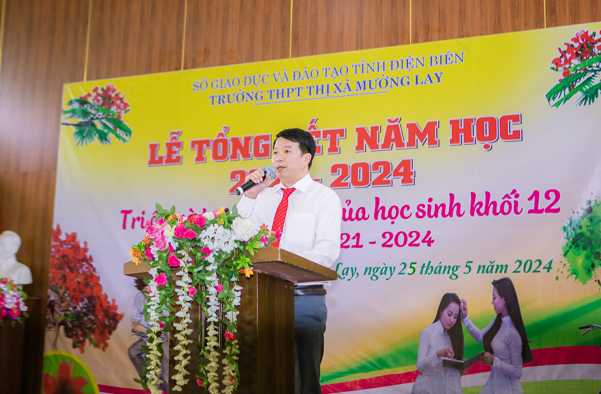 Phát biểu tại Lễ Tri ân và Trưởng thành, thầy giáo, thạc sĩ Nguyễn Văn Hải - Bí thư chi bộ, hiệu trưởng nhà trường đã gửi lời cảm ơn chân thành tới các bậc phụ huynh đã tạo mọi điều kiện thuận lợi cho các con được học hành, luôn luôn phối hợp với nhà trường trong công tác dạy học và giáo dục học sinh. Trong buổi lễ đặc biệt của học trò, thầy Hiệu trưởng đã có rất nhiều điều nhắn gửi chân tình, sâu sắc tới 170 học sinh khối lớp 12: “Khi rời xa mái trường THPT thị xã Mường Lay, phía trước các em là đường đời muôn ngả. Mỗi em sẽ chọn lối rẽ và đích đến cho riêng mình. Cuộc sống chắc chắn sẽ có nhiều chông gai, thử thách  nhưng Thầy mong các em hãy tự tin trên gương mặt, lương thiện ở trong tim, khí phách ở trong máu và mạnh mẽ trong cuộc đời thì dù trong môi trường học tập hay công tác nào, các em cũng sẽ thành công.” Thầy Hiệu trưởng cũng cảm ơn các em học sinh vì ở thời điểm cách đây 3 năm, các em đã lựa chọn Trường THPT thị xã Mường Lay bằng sự thân thiện, yêu mến. Thầy tin rằng, với những thành tích mà các em học sinh niên khóa 2021 - 2024 đã làm được trong suốt 3 năm qua chắc chắn các em sẽ gặt hái được những kết quả tốt nhất trong Kỳ thi Tốt nghiệp THPT 2024 và kỳ thi tuyển sinh Đại học, Cao đẳng sắp tới.