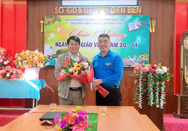 Đ/c Nguyễn Văn Linh – Bí thư Thị đoàn Mường Lay – tặng hoa chúc mừng nhà trường.