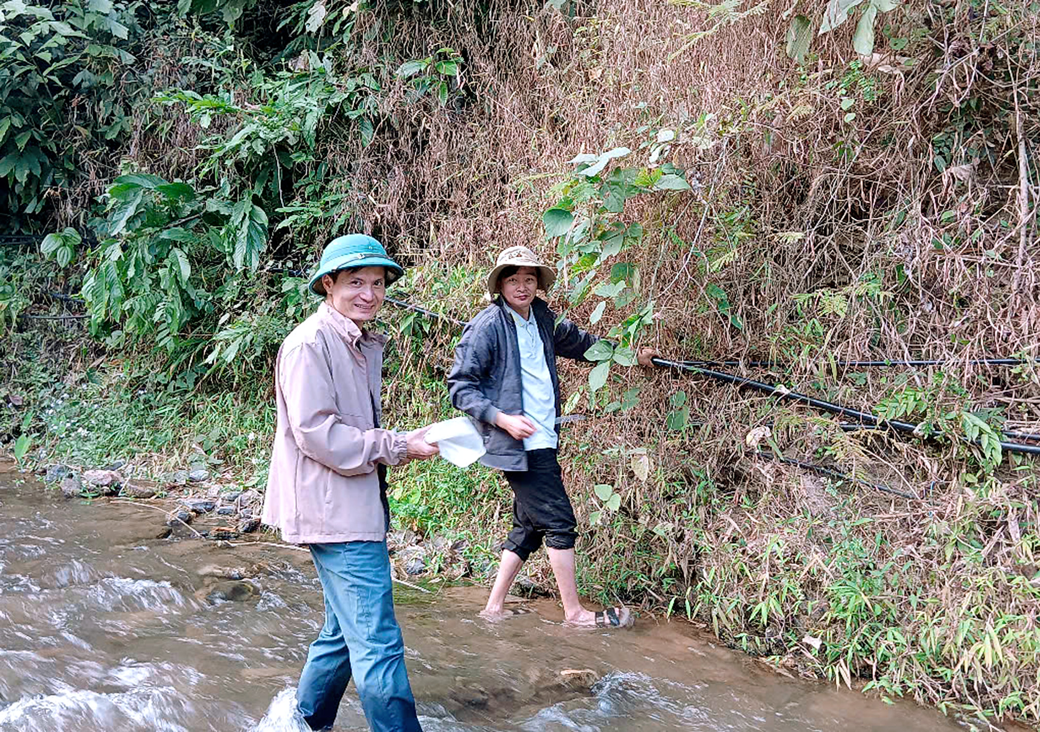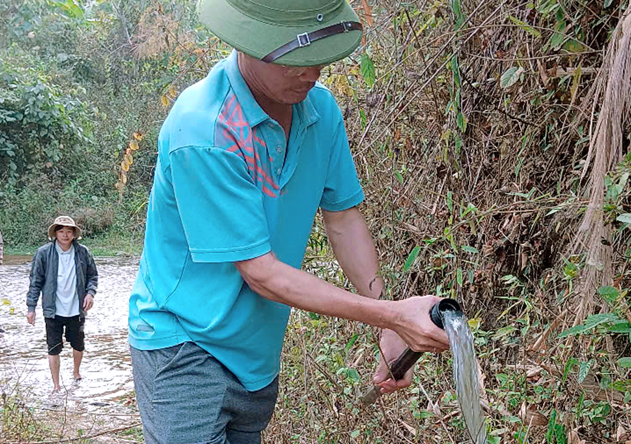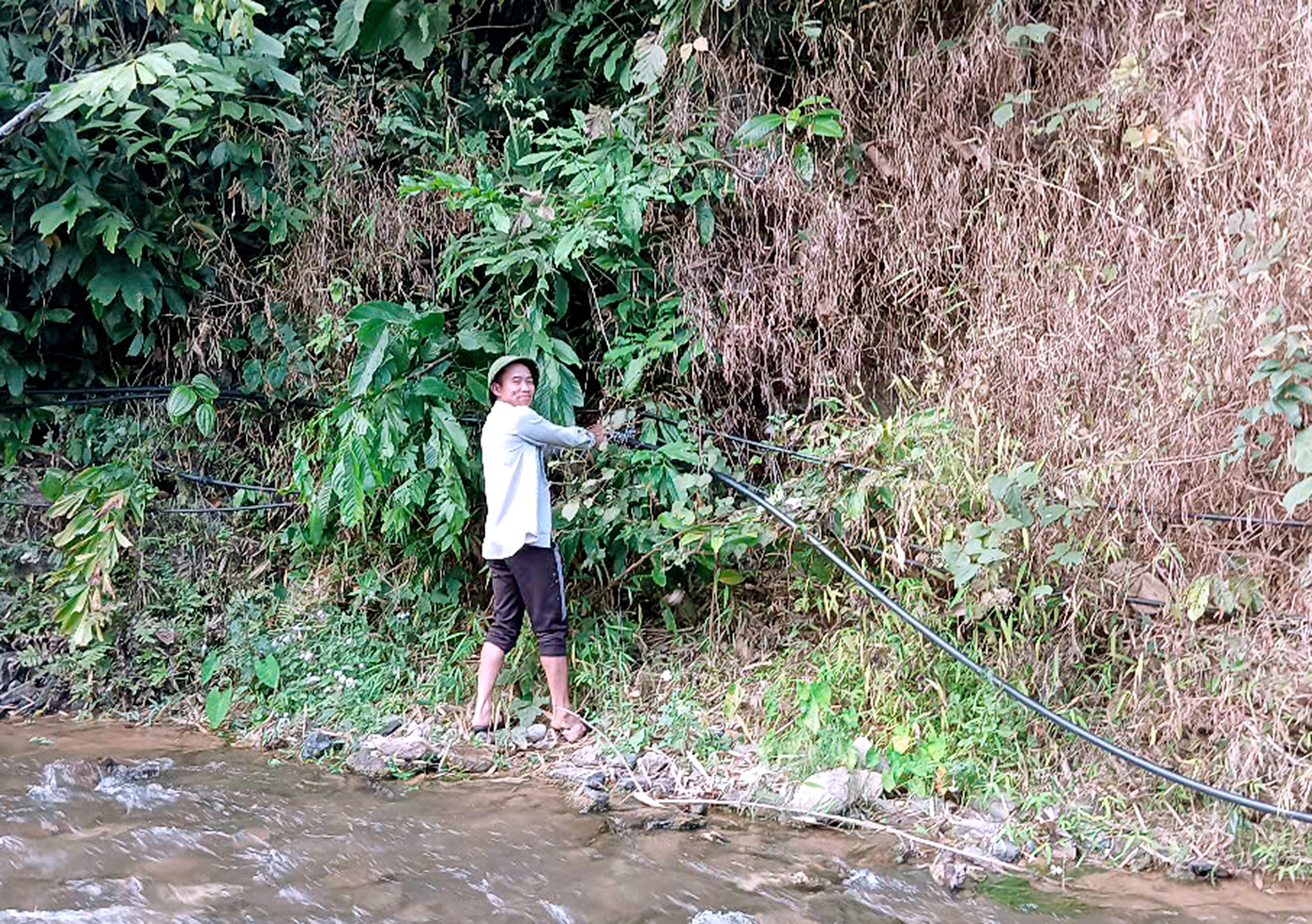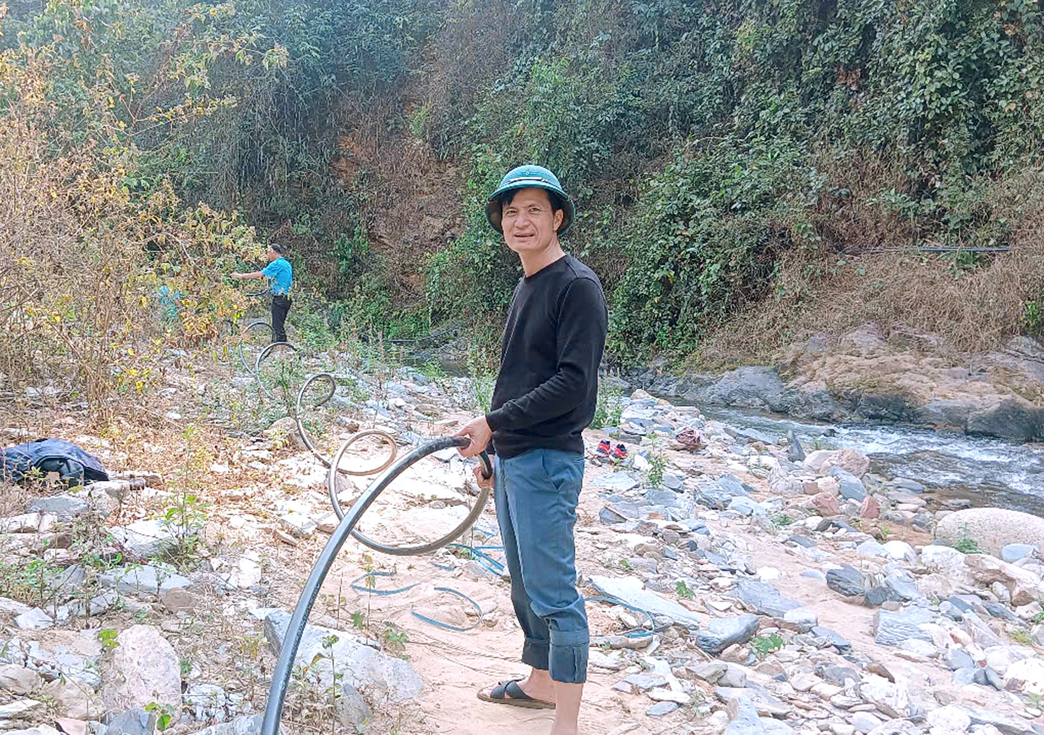 Nhưng không chỉ trường học, mà bà con dân bản cũng bắt đường ống để dẫn nước về sử dụng sinh hoạt. Nước khe suối mà nhà trường vẫn thường xuyên sử dụng năm nay cạn và ít nước không đủ đáp úng nhu cầu của các em, lên ngay khi thấy tình hình như vây các thầy trong nhà trường phải bắt tay vào tìm nguồn nước mới để kéo về cho học sinh sử dụng.