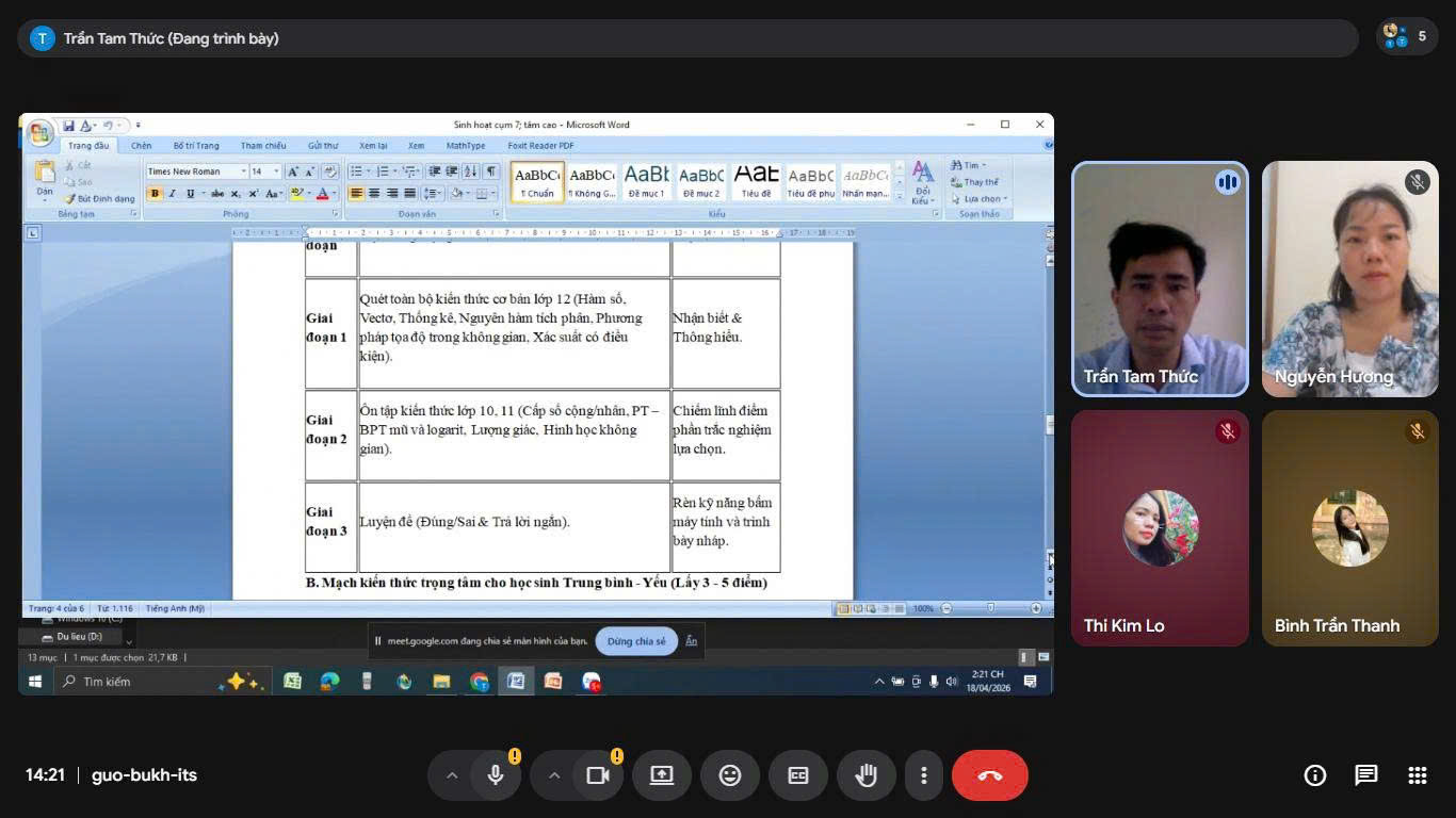 Một số hình ảnh buổi sinh hoạt chuyên môn nhóm Toán cụm chuyên môn số 7