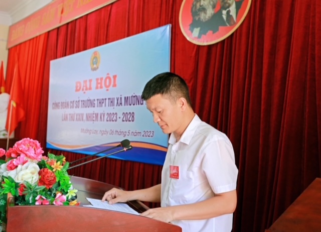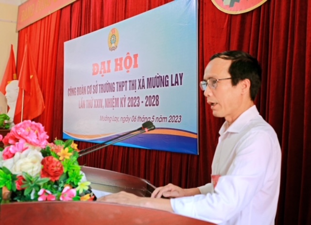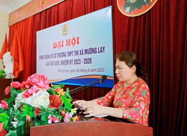 Đại diện cấp ủy nhà trường, Đ/c Đào Thị Kim Oanh – Phó Bí thư Chi bộ, Phó Hiệu trưởng nhà trường cũng có bài phát biểu tại Đại hội. Đ/c đã nhất trí với phương hướng và nhiệm vụ của Công đoàn trường trong nhiệm kì 2023 – 2028, bày tỏ tin tưởng rằng cùng với sự đoàn kết, nỗ lực của các công đoàn viên, Ban chấp hành Công đoàn nhiệm kì mới sẽ hoàn thành xuất sắc nhiệm vụ, góp phần đưa trường THPT Thị xã Mường Lay phát triển.