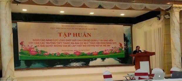 Tầm quan trọng đó được nhà nước thúc đẩy rộng rãi trong mọi lĩnh vực của đời sống xã hội trong đó Ngành giáo dục đóng vai trò quan trọng. Nhận thức rõ trách nhiệm của mình, Cục Nhà giáo và Cán bộ quản lý giáo dục (Bộ GD-ĐT) tổ chức khóa tập huấn nâng cao năng lực cho cán bộ quản lý và giáo viên cốt cán các trường THPT thuộc địa bàn dự án 8 “THỰC HIỆN BÌNH ĐẲNG GIỚI VÀ GIẢI QUYẾT NHỮNG VẤN ĐỀ CẤP THIẾT ĐỐI VỚI PHỤ NỮ VÀ TRẺ EM”.