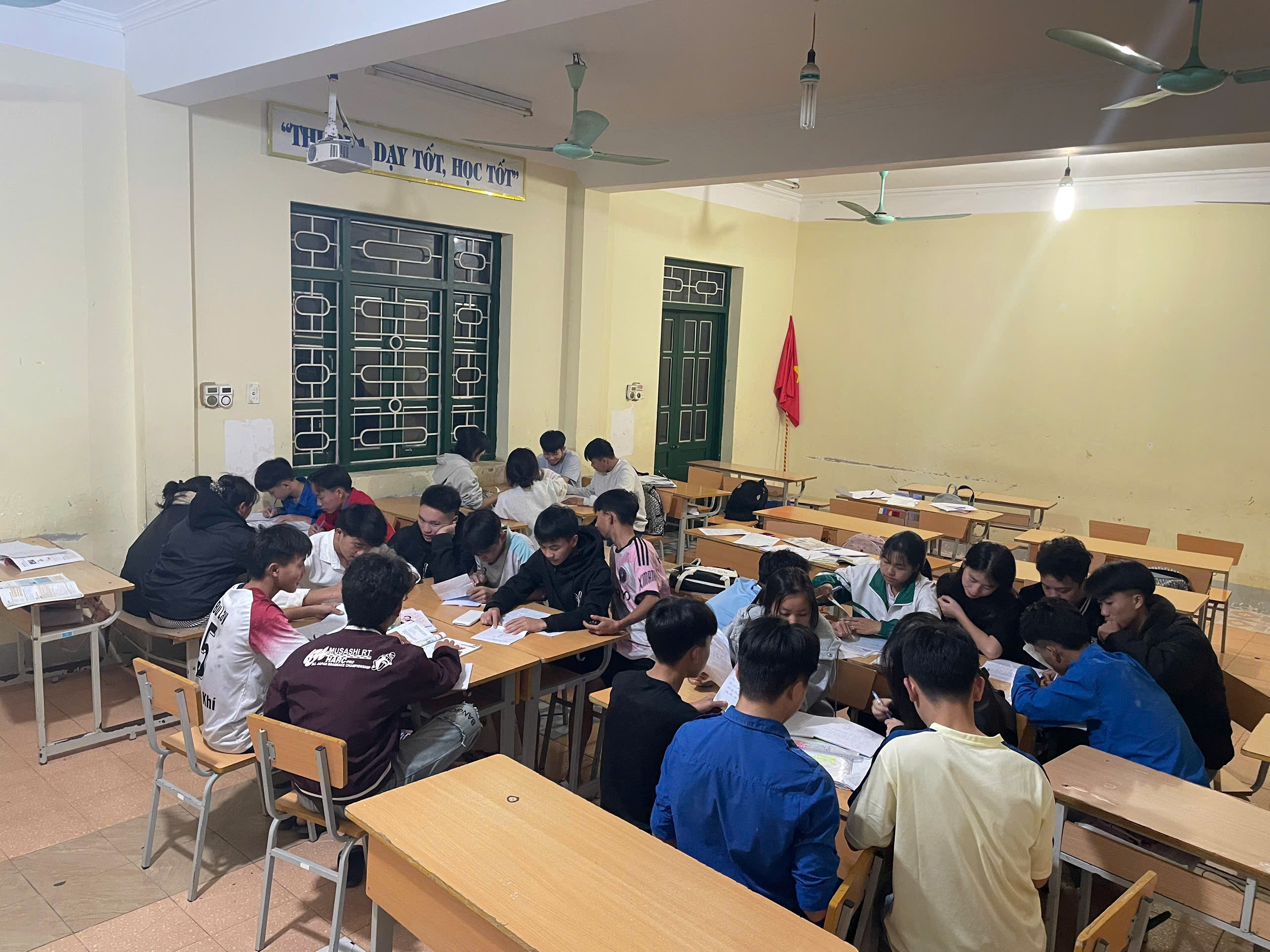 Khác với thời điểm đầu năm học – khi học sinh chủ yếu làm quen nề nếp, phương pháp học tập – thì ở giai đoạn giữa tháng 12, hoạt động tự học buổi tối đã đi vào chiều sâu và phát huy rõ hiệu quả. Đến đúng giờ quy định, học sinh chủ động di chuyển đến lớp học, nhanh chóng ổn định chỗ ngồi và bắt đầu giờ tự học trong không khí nghiêm túc, trật tự.