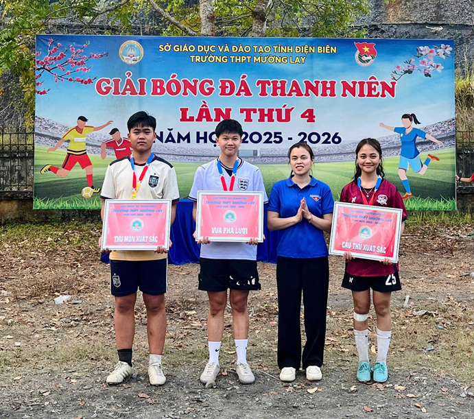 Sau nhiều ngày thi đấu sôi nổi với tinh thần đoàn kết, trung thực và cao thượng, chiều ngày 08/3/2026, tại sân trường THPT Mường Lay, Lễ bế mạc Giải bóng đá Thanh niên lần thứ 4 đã được tổ chức trong không khí trang trọng, vui tươi và đầy cảm xúc. Buổi lễ là dịp để tổng kết hành trình thi đấu đầy nhiệt huyết của các đội bóng, đồng thời ghi nhận và vinh danh những tập thể đã thi đấu xuất sắc trong suốt mùa giải.