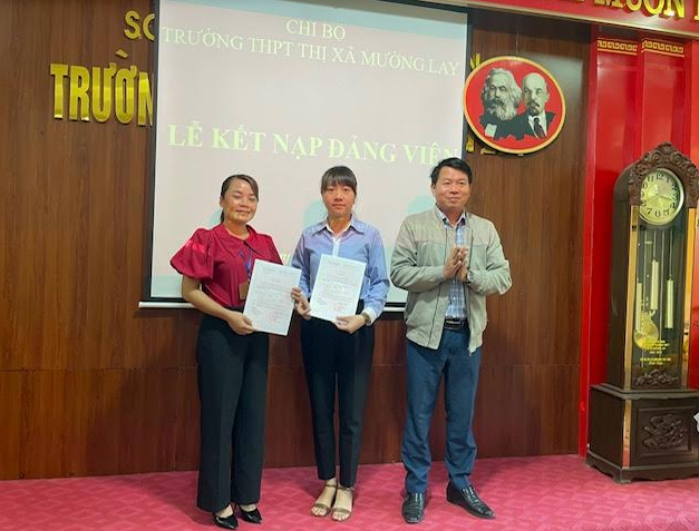 Theo đó, chiều ngày 17/11/2023 được sự chỉ đạo và nhất trí của Đảng bộ Thị xã Mường Lay, Chi bộ trường THPT Thị xã Mường Lay tổ chức Lễ kết nạp Đảng viên mới cho 02 quần chúng ưu tú: Hoàng Thúy Phượng và Nguyễn Thị Hằng.