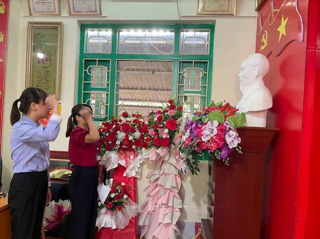 Trước cờ Tổ quốc, cờ Đảng và chân dung Chủ tịch Hồ Chí Minh, 02 đồng chí Hoàng Thúy Phượng và Nguyễn Thị Hằng đã đọc lời tuyên thệ nguyện trung thành với mục tiêu và lý tưởng của Đảng, nỗ lực phấn đấu để xứng đáng là đảng viên Đảng Cộng Sản Việt Nam.