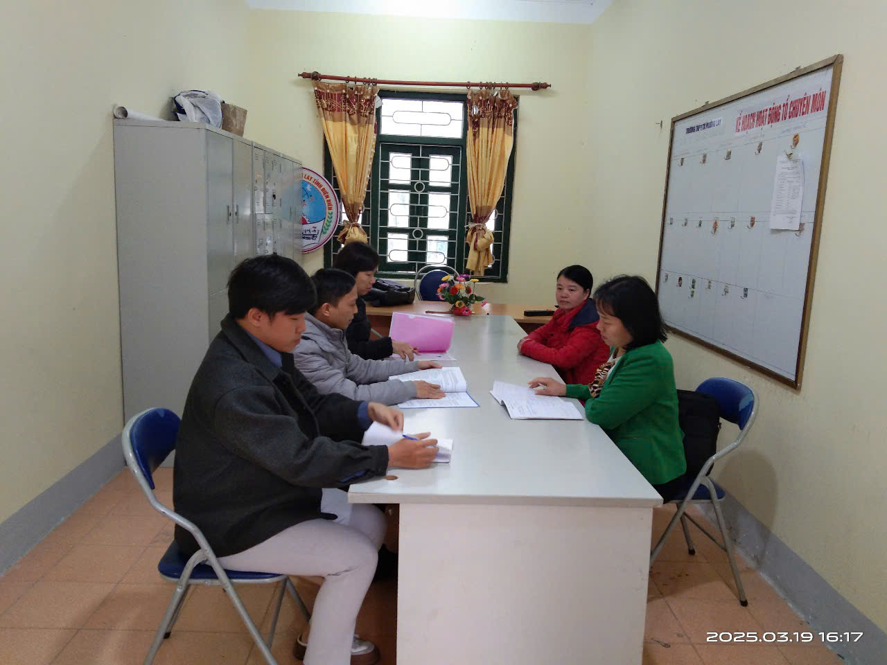 Thực hiện nhiệm vụ trên, ngày 11/3/2025, nhóm Toán trường THPT Thị xã Mường Lay đã tổ chức sinh hoạt chuyên môn theo nghiên cứu bài học. Nhóm đã cùng nhau thảo luận, xác định mục tiêu, kỹ năng mà học sinh cần đạt được, xây dựng kế hoạch bài học: “Bài 26: Thể tích” – Toán 11.