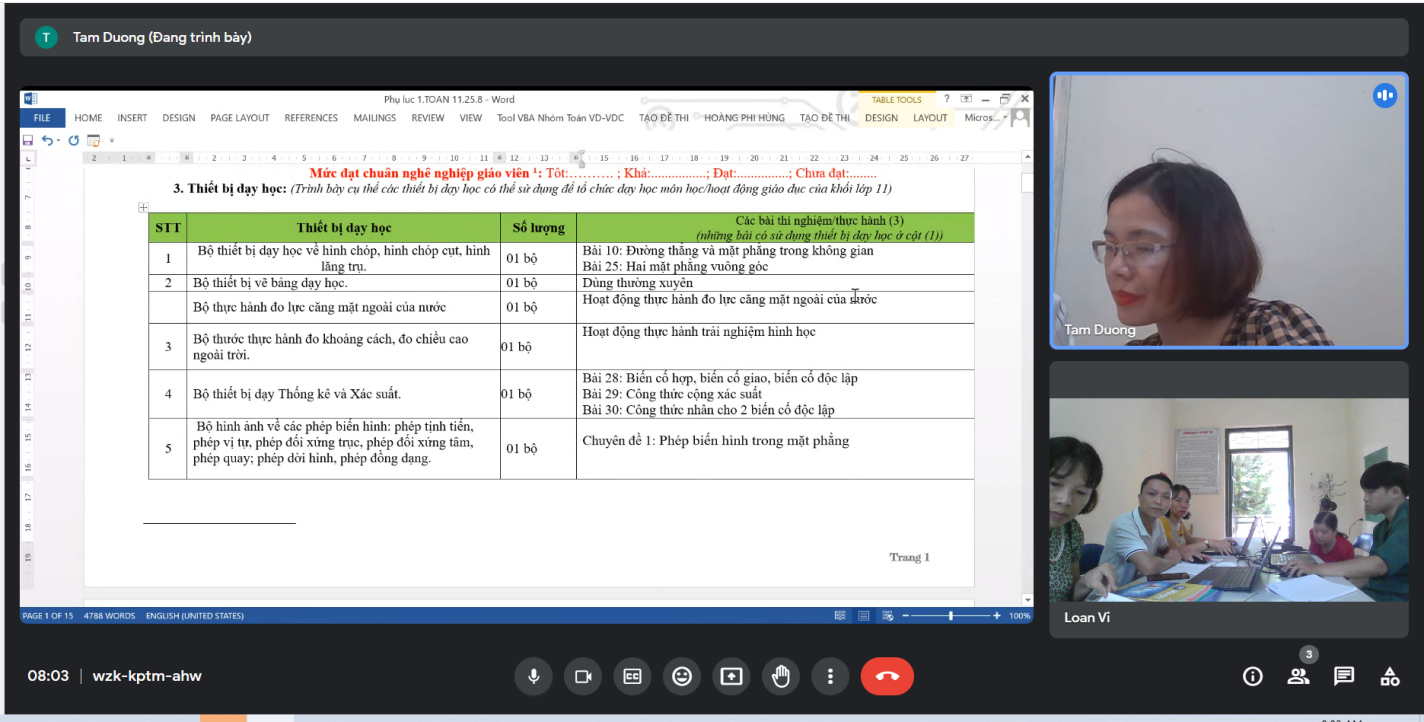 Nhóm Toán Trường THPT thị xã Mường Lay tham gia sinh hoạt cụm chuyên môn trực tuyến