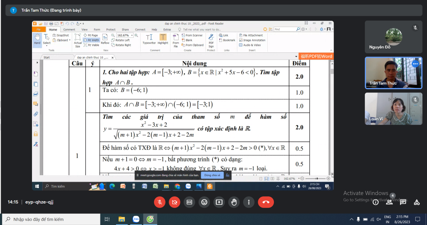 Thực hiện kế hoạch số 335/KH-CCM ngày 15 tháng 8 năm 2023 của cụm chuyên môn số 7, về việc tổ chức bồi dưỡng chính trị hè năm 2023 và sinh hoạt cụm chuyên môn lần 1 năm học 2023 - 2024, hôm nay ngày 26 tháng 8 năm 2023, nhóm Toán Trường THPT Thị xã Mường Lay tham gia sinh hoạt chuyên môn với cụm chuyên môn số 7 bằng hình thức trực tuyến gồm các nội dung sau: