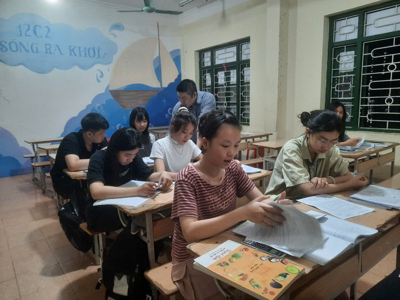 Hình ảnh Giáo viên bộ môn hướng dẫn học sinh khối 12 học buổi tối