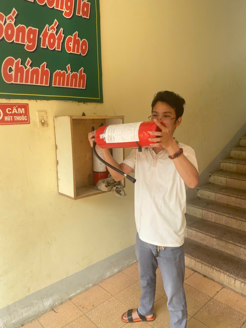 Bên cạnh đó, cán bộ, giáo viên và nhân viên được hướng dẫn trực tiếp cách sử dụng bình chữa cháy xách tay, thao tác xử lý tình huống cháy nổ ban đầu. Hoạt động này giúp nâng cao kỹ năng thực hành, góp phần chủ động phòng ngừa và giảm thiểu thiệt hại nếu có sự cố xảy ra.