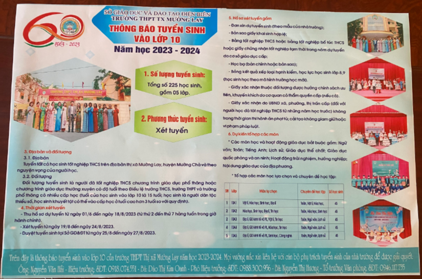 Để triển khai và thực hiện tốt công tác tuyển sinh, theo sự chỉ đạo của Sở giáo dục và đào tạo Điện Biên, nhà trường đã lên kế hoạch và thành lập Hội đồng tuyển sinh để chuẩn bị tốt nhất, được trang bị đầy đủ kiến thức và kĩ năng cho công tác tuyển sinh. Trong suốt thời gian tuyển sinh, ngoài lịch trực của Ban giám hiệu, tổ tư vấn tuyển sinh luôn túc trực thường xuyên tại trường và các trường THCS để kịp thời hỗ trợ các em trong công tác nộp hồ sơ, hạn chế tối đa sự đi lại và tốn kém của các em cũng như kịp thời xử lí một số tình huống xảy ra.