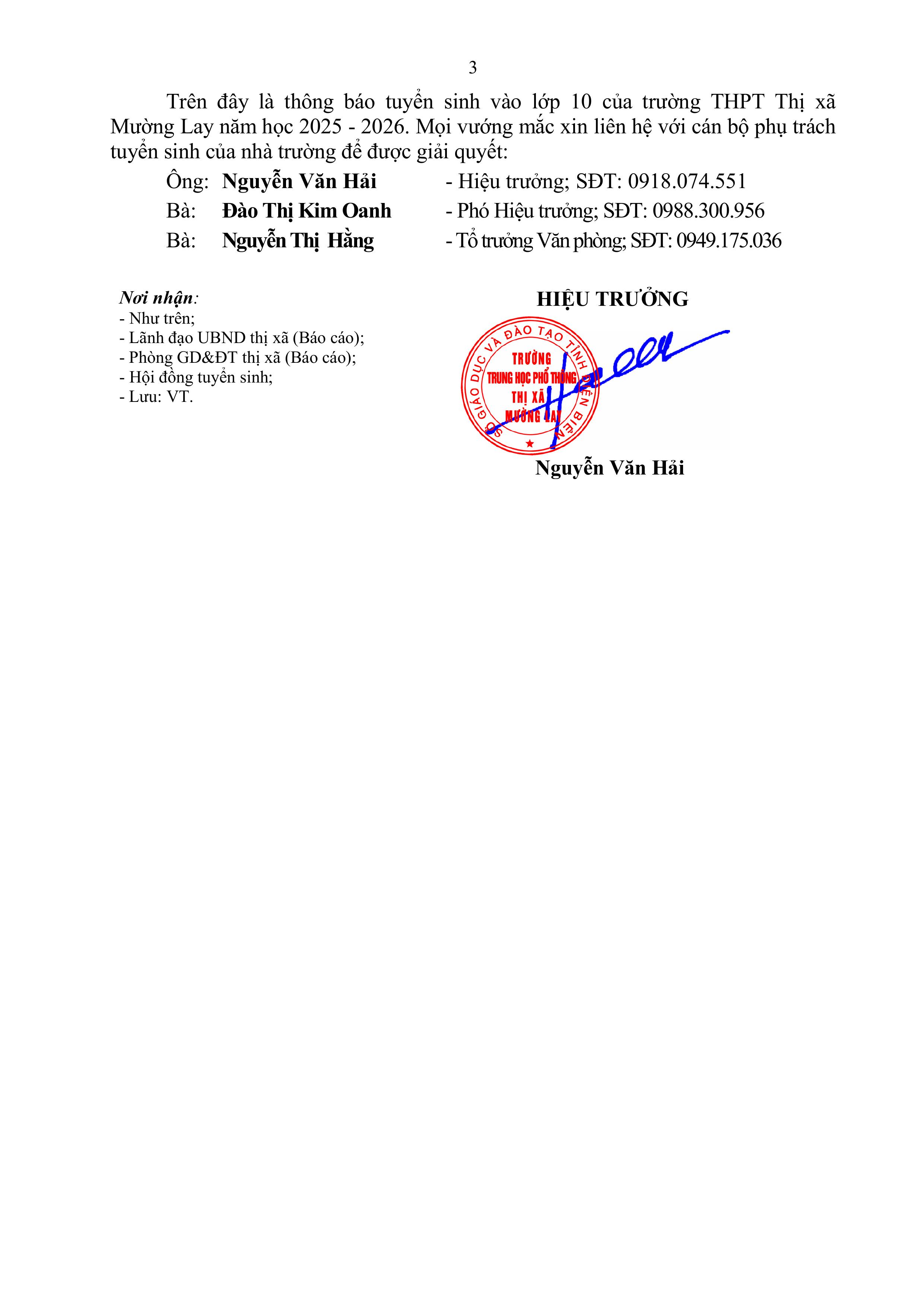 THÔNG BÁO TUYỂN SINH VÀO LỚP 10