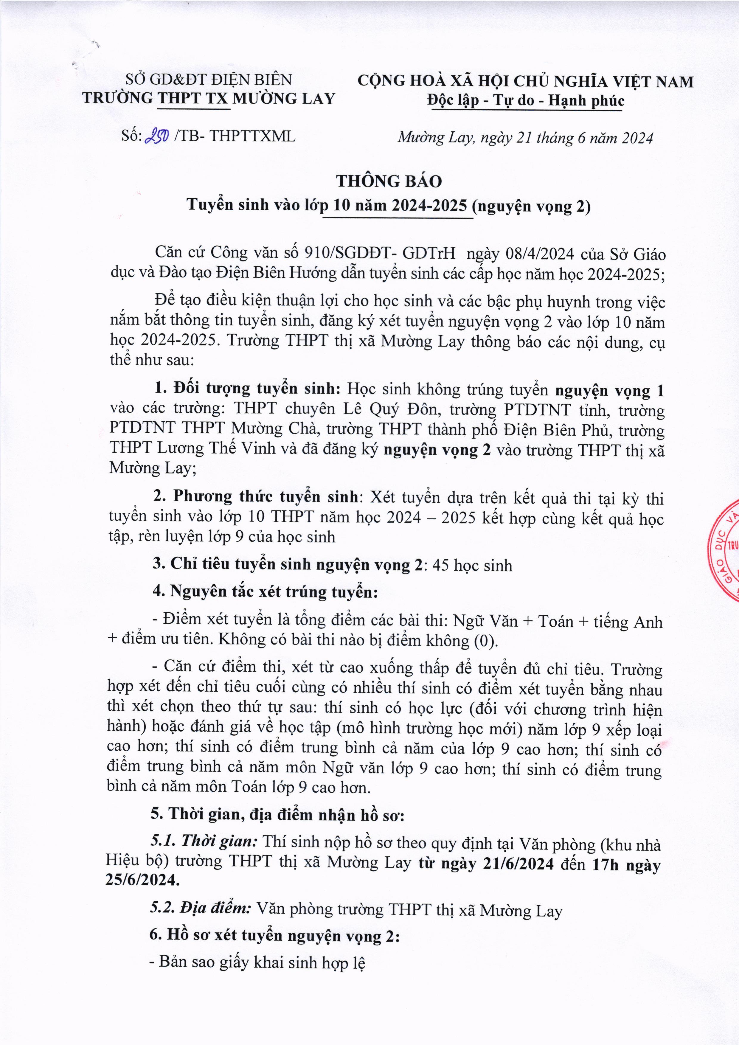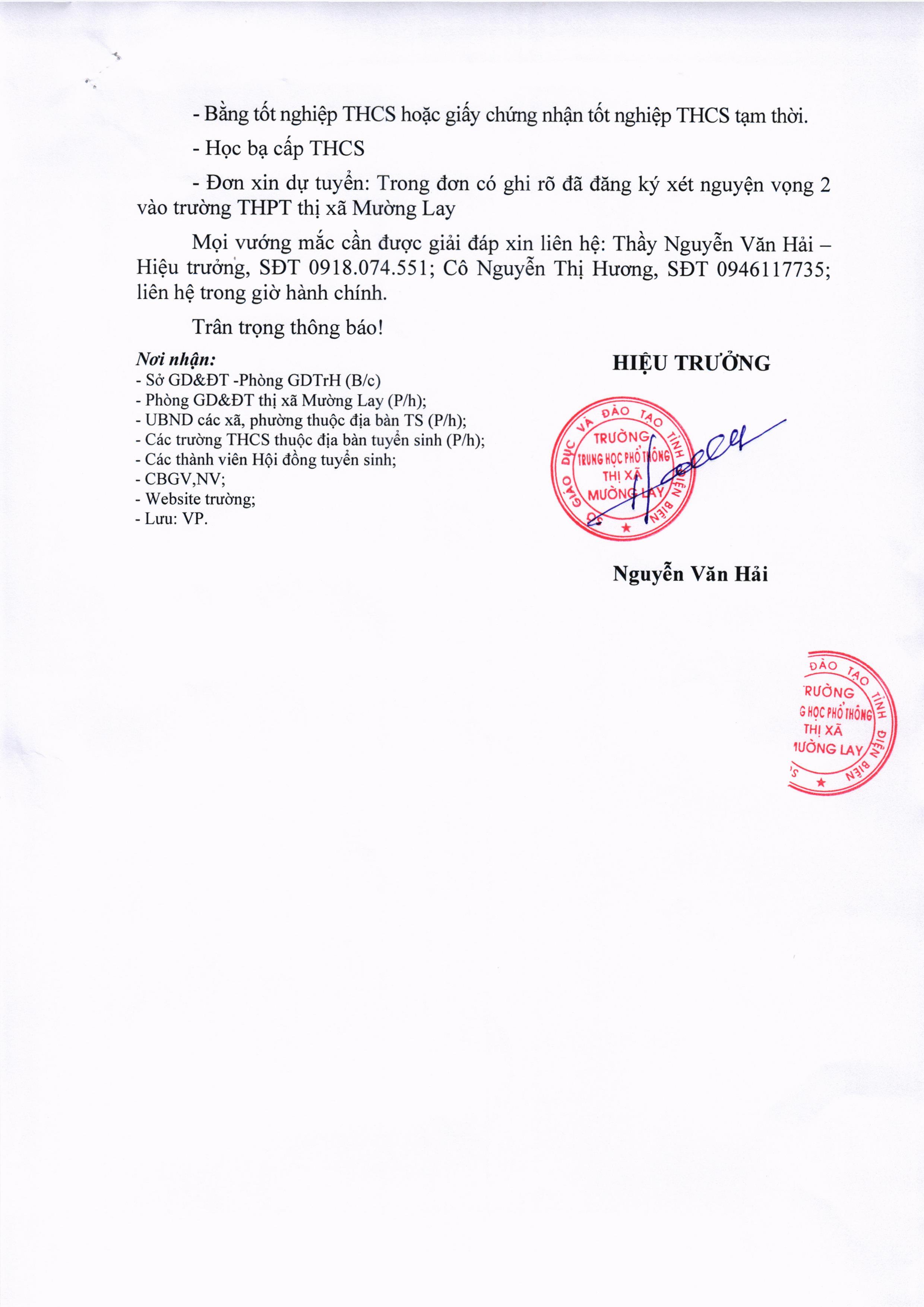 THÔNG BÁO TUYỂN SINH VÀO LỚP 10