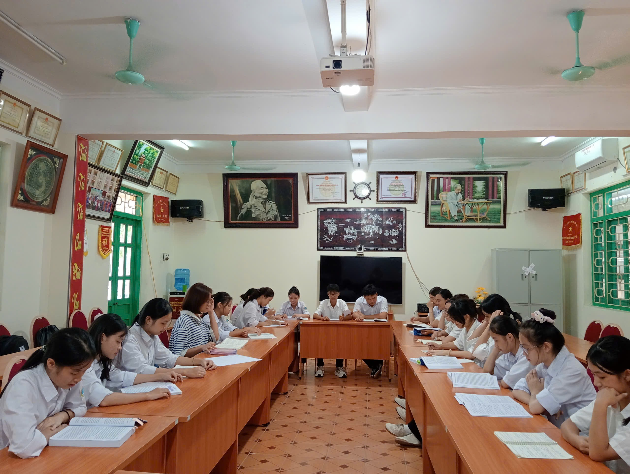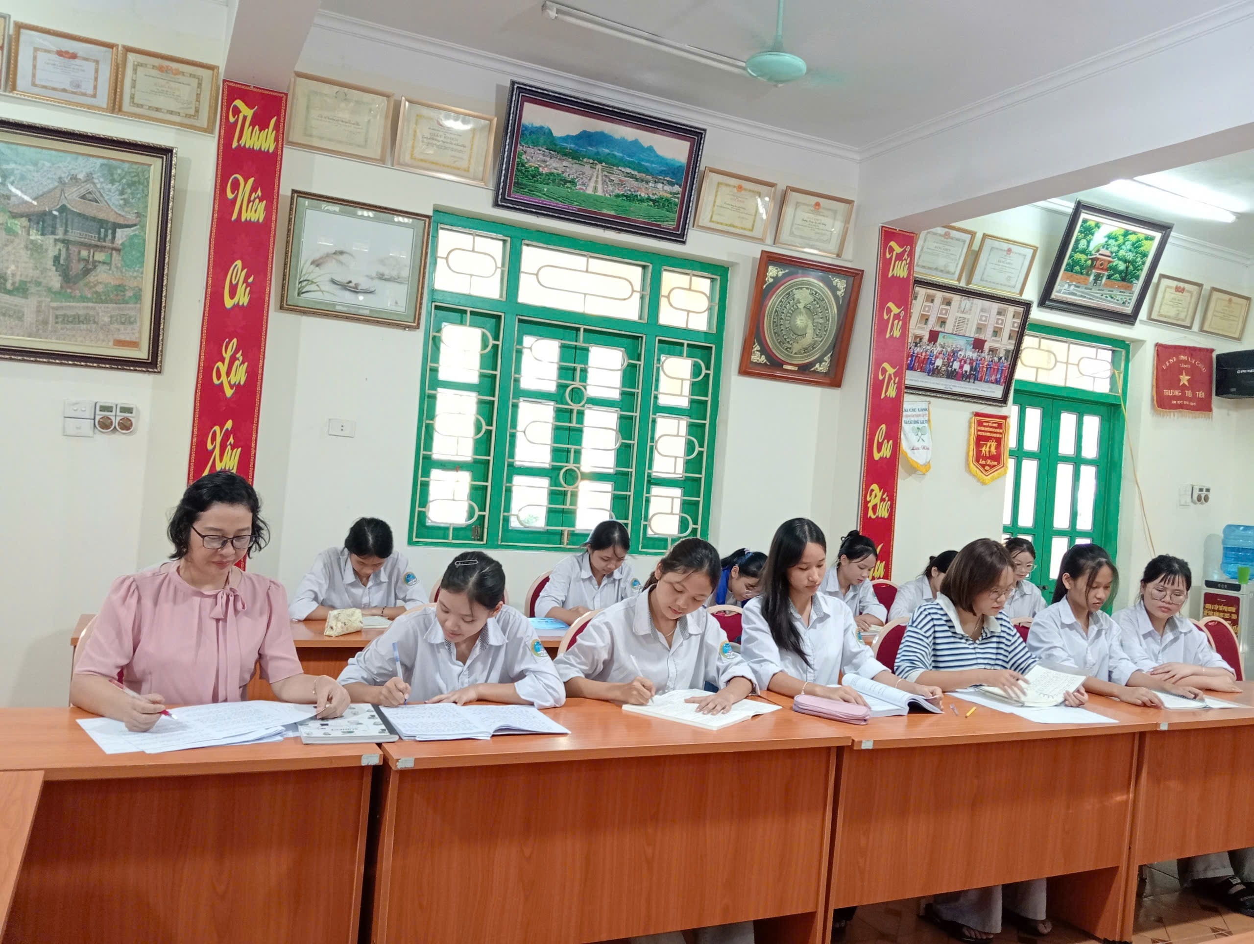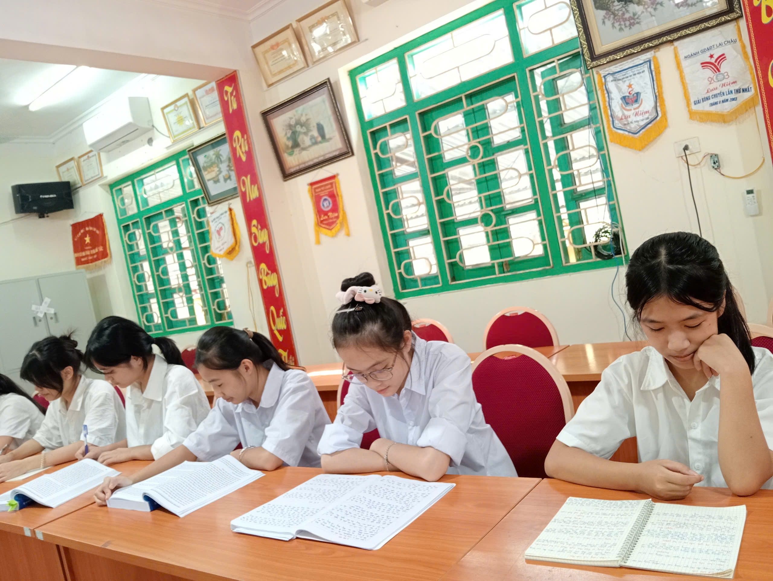 Hình ảnh các em học sinh đang tích cực ôn luyện.