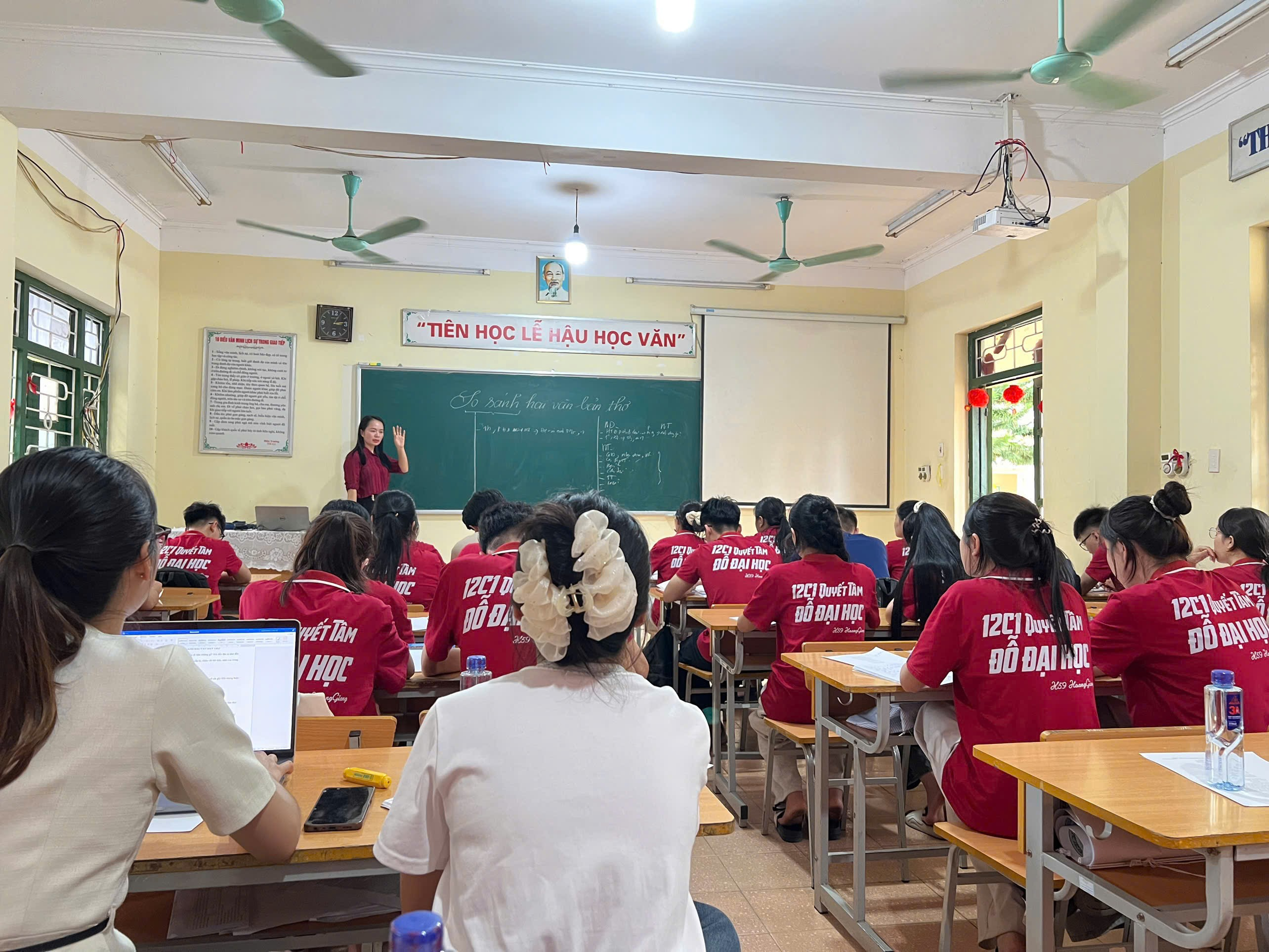 Cô giáo Đoàn Thị Biên – tổ trưởng tổ Ngữ văn – chia sẻ: “Chúng tôi luôn xác định rằng, mỗi tiết ôn luyện là một cơ hội để học sinh rèn luyện bản lĩnh và củng cố tri thức. Do đó, tổ luôn đồng thuận cao trong việc đổi mới phương pháp dạy học, tăng cường tính tương tác, phát huy năng lực tự học của học sinh.”