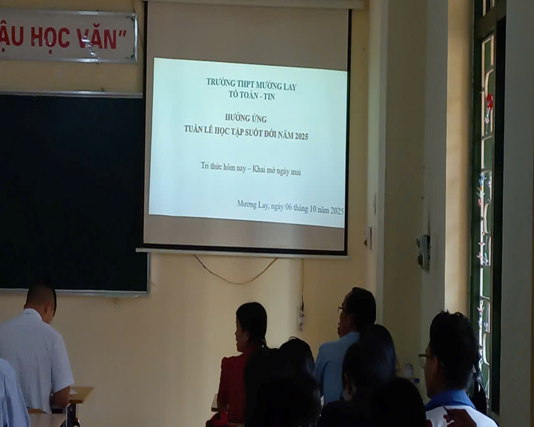 Hưởng ứng Tuần lễ Học tập suốt đời năm 2025 do Bộ Giáo dục và Đào tạo phát động (từ ngày 01 đến 07 tháng 10 năm 2025), Tổ Toán – Tin, Trường THPT Mường Lay đã tổ chức nhiều hoạt động ý nghĩa nhằm lan tỏa tinh thần học tập thường xuyên, liên tục và suốt đời đến toàn thể giáo viên, học sinh.