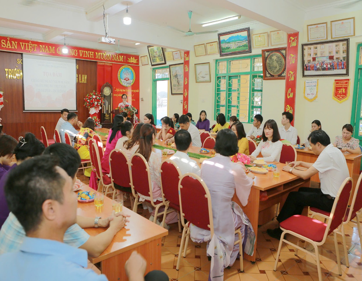 Trường THPT Thị Xã Mường Lay đã tổ chức buổi tọa đàm long trọng kỷ niệm 94 năm Ngày Phụ Nữ Việt Nam. Đây là dịp đặc biệt để tôn vinh những đóng góp to lớn của phụ nữ Việt Nam, đặc biệt là các nữ giáo viên và nhân viên trong nhà trường. Sự kiện diễn ra trong không khí ấm áp, trang trọng, với sự tham gia của toàn thể cán bộ, giáo viên, và nhân viên nhà trường.