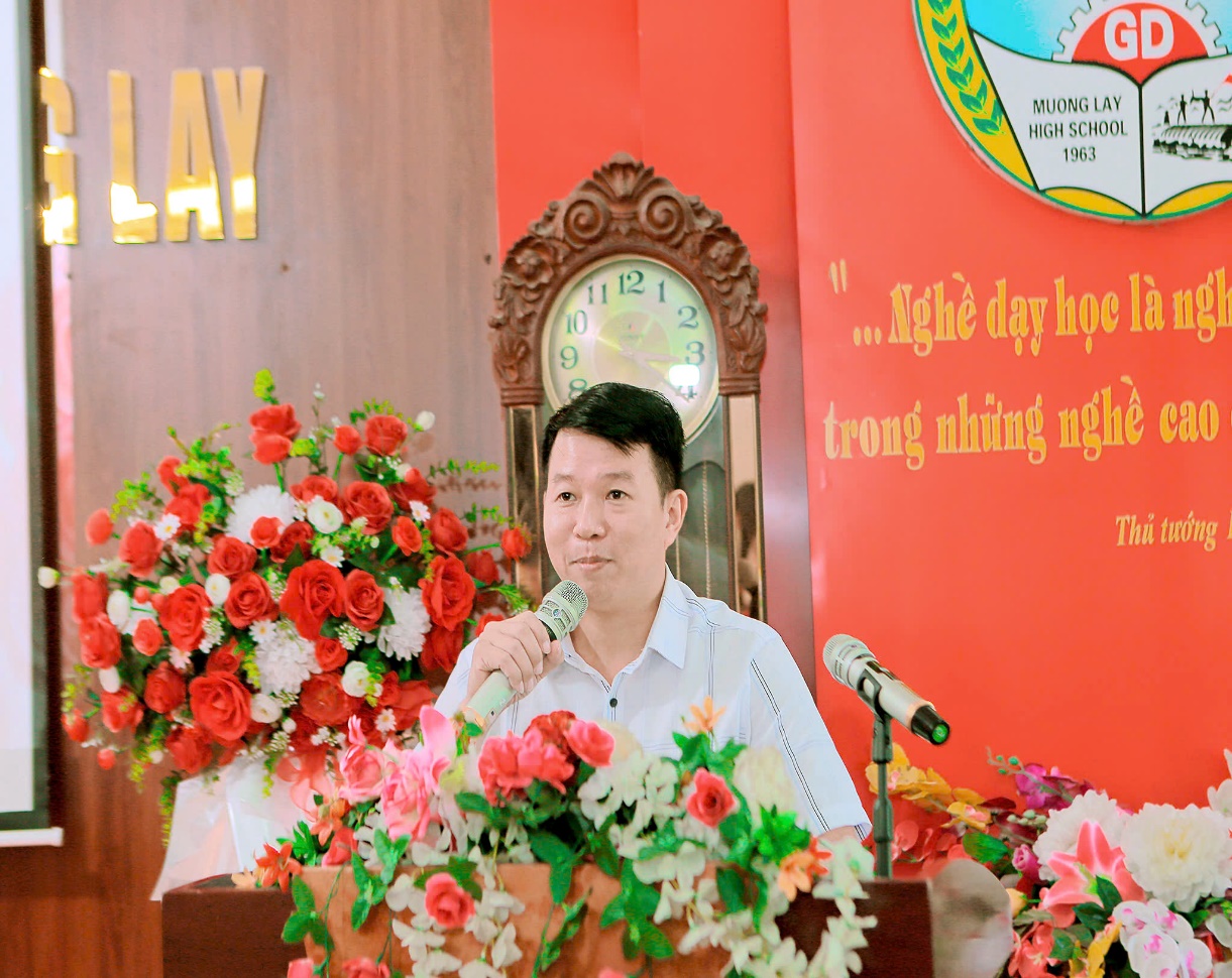 Thầy hiệu trưởng Nguyễn Văn Hải gửi lời chúc mừng đến cán bộ giáo viên, công nhân viên nhà trường