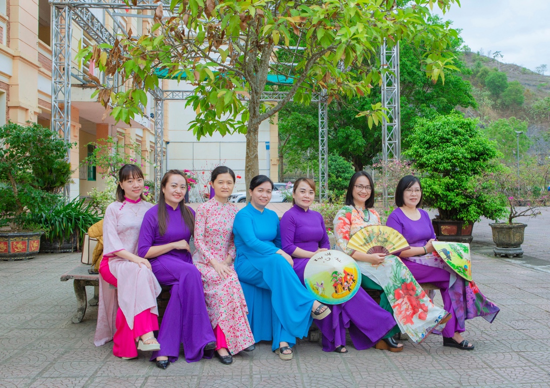 Trong không gian thân quen của mái trường, các nữ cán bộ, giáo viên và nhân viên đã cùng nhau lưu giữ những khoảnh khắc thật đẹp. Tà áo dài thướt tha, những nụ cười rạng rỡ cùng ánh mắt tràn đầy niềm vui đã tạo nên những bức ảnh đầy cảm xúc. Mỗi khung hình không chỉ ghi lại nét đẹp duyên dáng của người phụ nữ mà còn thể hiện tinh thần đoàn kết, gắn bó của tập thể nhà trường.