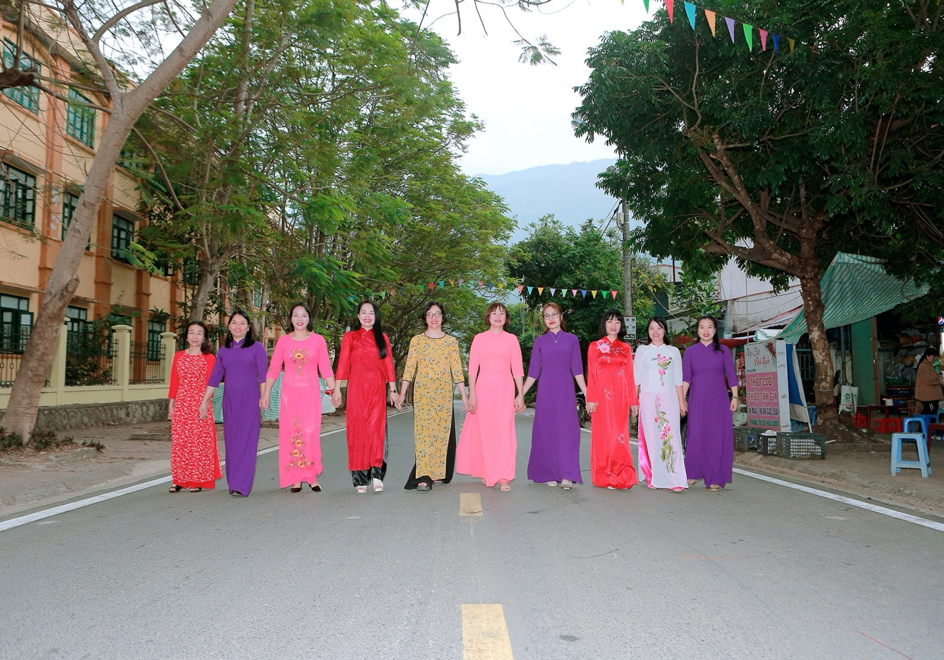 Hình ảnh các cô giáo trường THPT thị xã Mường Lay hưởng ứng “Tuần lễ áo dài”