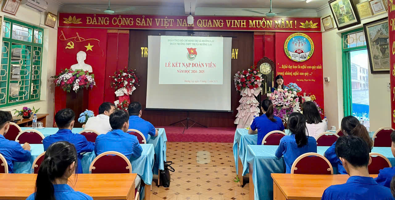 Thực hiện kế hoạch số 61-KH/ĐTN ngày 05/11/2024 của Đoàn trường THPT Thị xã Mường Lay; 16h ngày 18/11/2024 tại phòng Hội đồng trường THPT Thị xã Mường Lay đã tổ chức lễ kết nạp đoàn viên mới đợt I cho 137 thanh niên ưu tú.