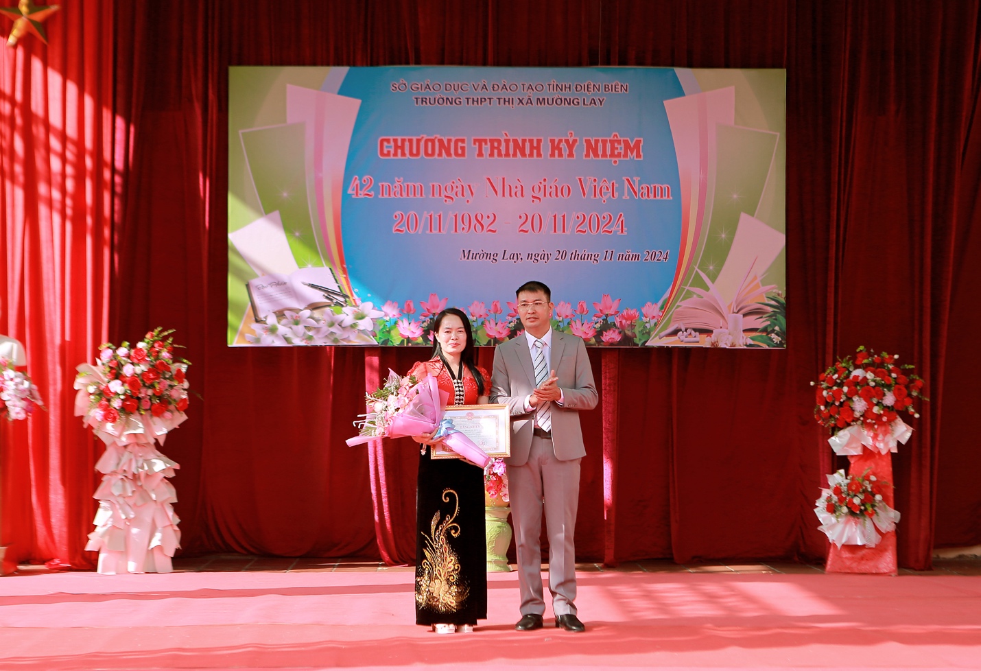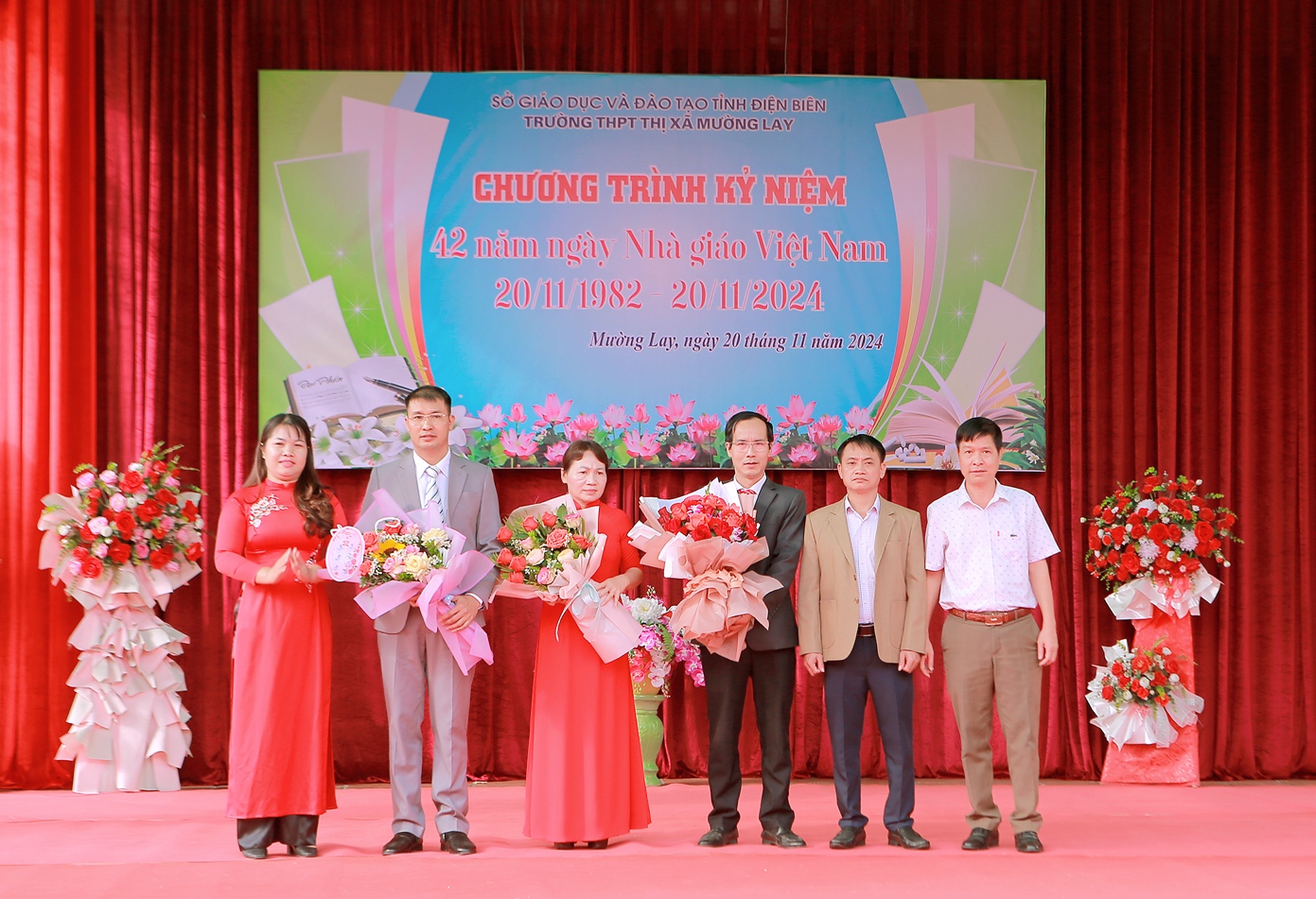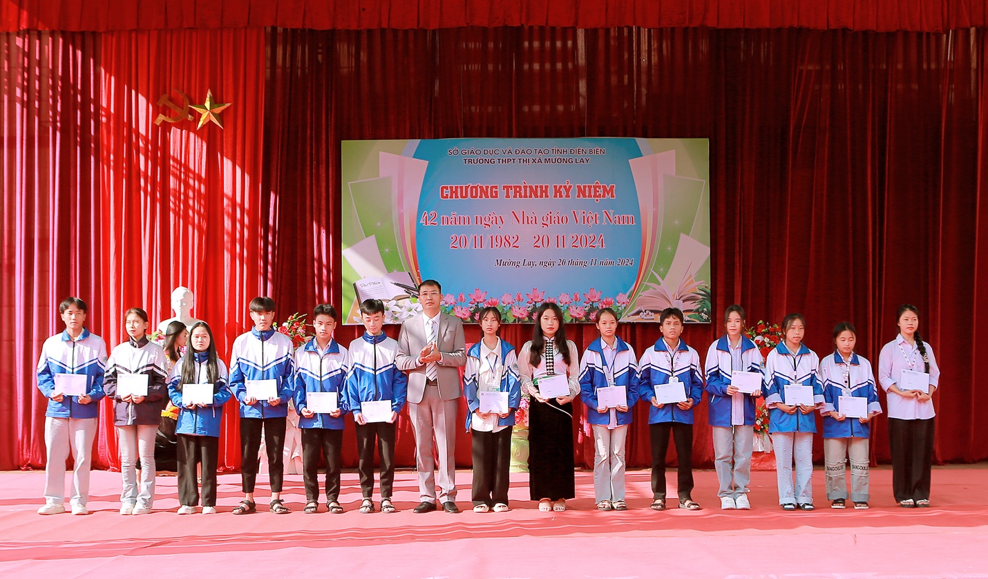 Trong bài diễn văn khai mạc ôn lại truyền thống ngày Hiến chương các Nhà giáo Việt Nam 20/11, thầy Nguyễn Đình Ngữ, Phó Hiệu trưởng trường phát biểu: Tập thể sư phạm nhà trường sẽ đem hết sức lực, trí tuệ, trách nhiệm để đóng góp nhiều hơn nữa cho giáo dục tỉnh Điện Biên, hoàn thành xuất sắc nhiệm vụ năm học 2024-2025, phấn đấu đưa trường THPT Thị xã Mường Lay là một trong những trường đứng đầu trong toàn tỉnh về chất lượng giáo dục.